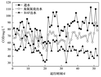 曝氣生物濾池(biological aerated filter,BAF)具有占地面積小,有機負荷高,抗沖擊能力強,出水水質好,產污泥量少等特點,是目前應用比較廣泛的污水深度處理技術之一. 但石化廢水廠二級出水中殘留大多是難生物降解的大分子有機物,廢水的可生化性較低,直接采用BAF處理有機物的去除效率不高. 化學氧化可以有效地將大分子有機物轉化為小分子物質,提高二級出水的可生化性,是生物處理的重要前處理技術. 臭氧具有很強的氧化性(氧化還原電位為2.07V,在水中僅比氟原子、氧原子和羥基自由基低),能夠顯著地改變有機物的分子結構,提高廢水的可生化性. 臭氧氧化在給水、污水處理或作為生化處理的預處理中一直備受關注。