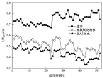 圖 4臭氧-曝氣生物濾池對UV254的去除Fig.4UV254 removal characteristics of thecombined process